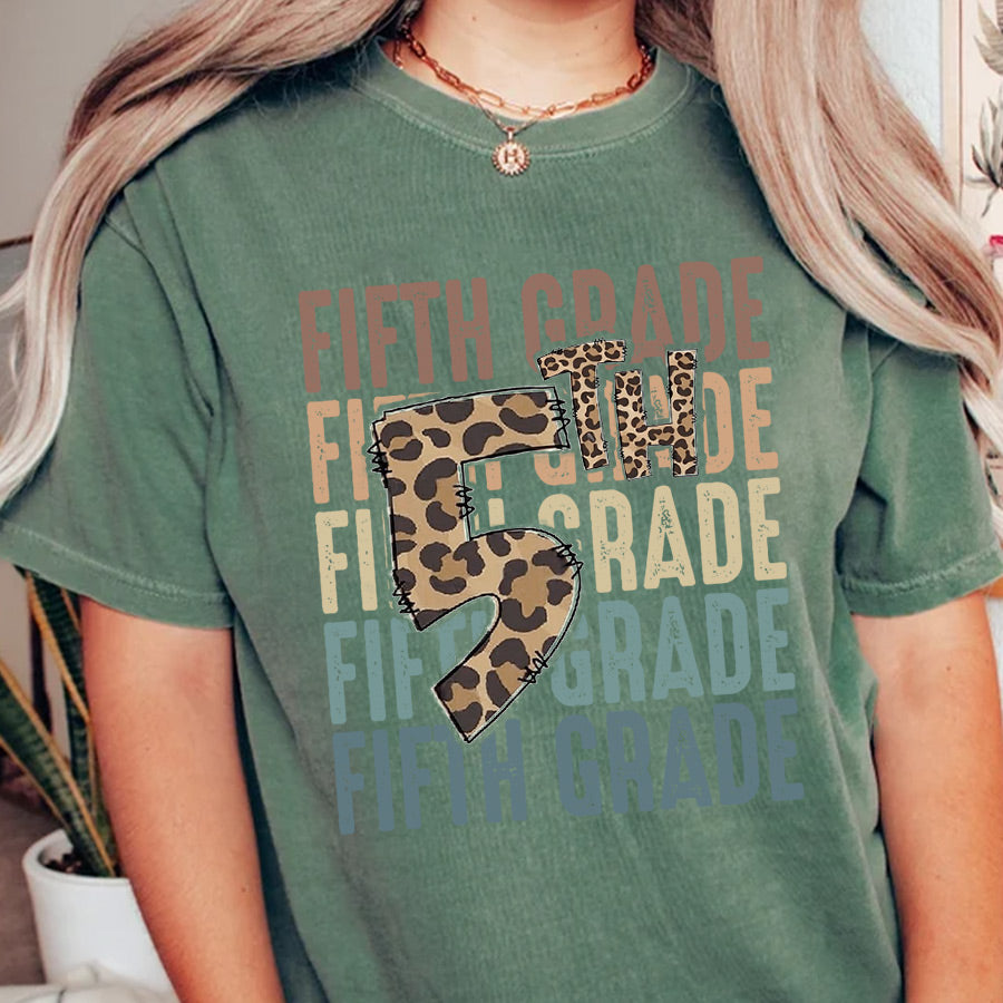 Celebrate the start of the school year with our Fifth Grade Teacher Shirt, designed with a stylish leopard print for a touch of flair. This Comfort Colors shirt is perfect for the first day of school and any day in the classroom, blending comfort and class for every dedicated teacher.