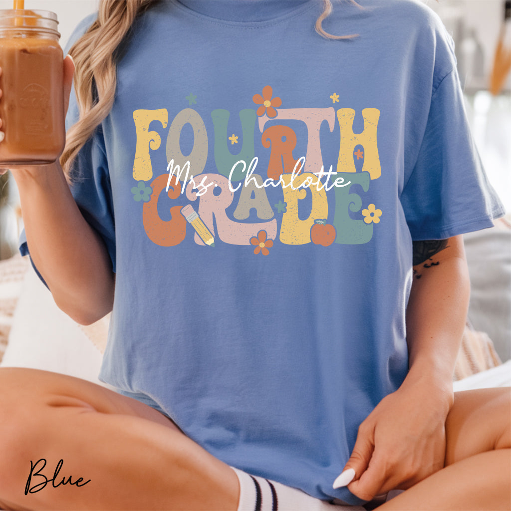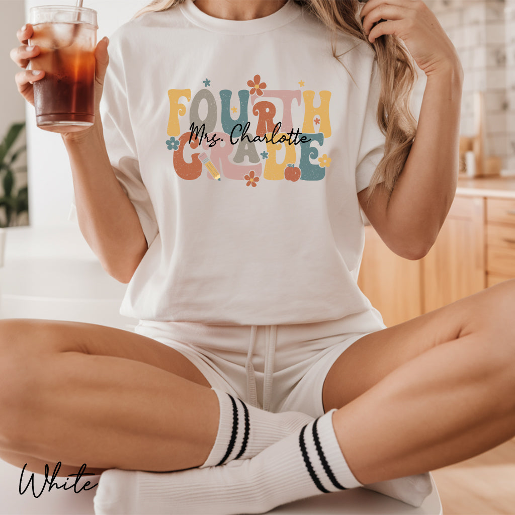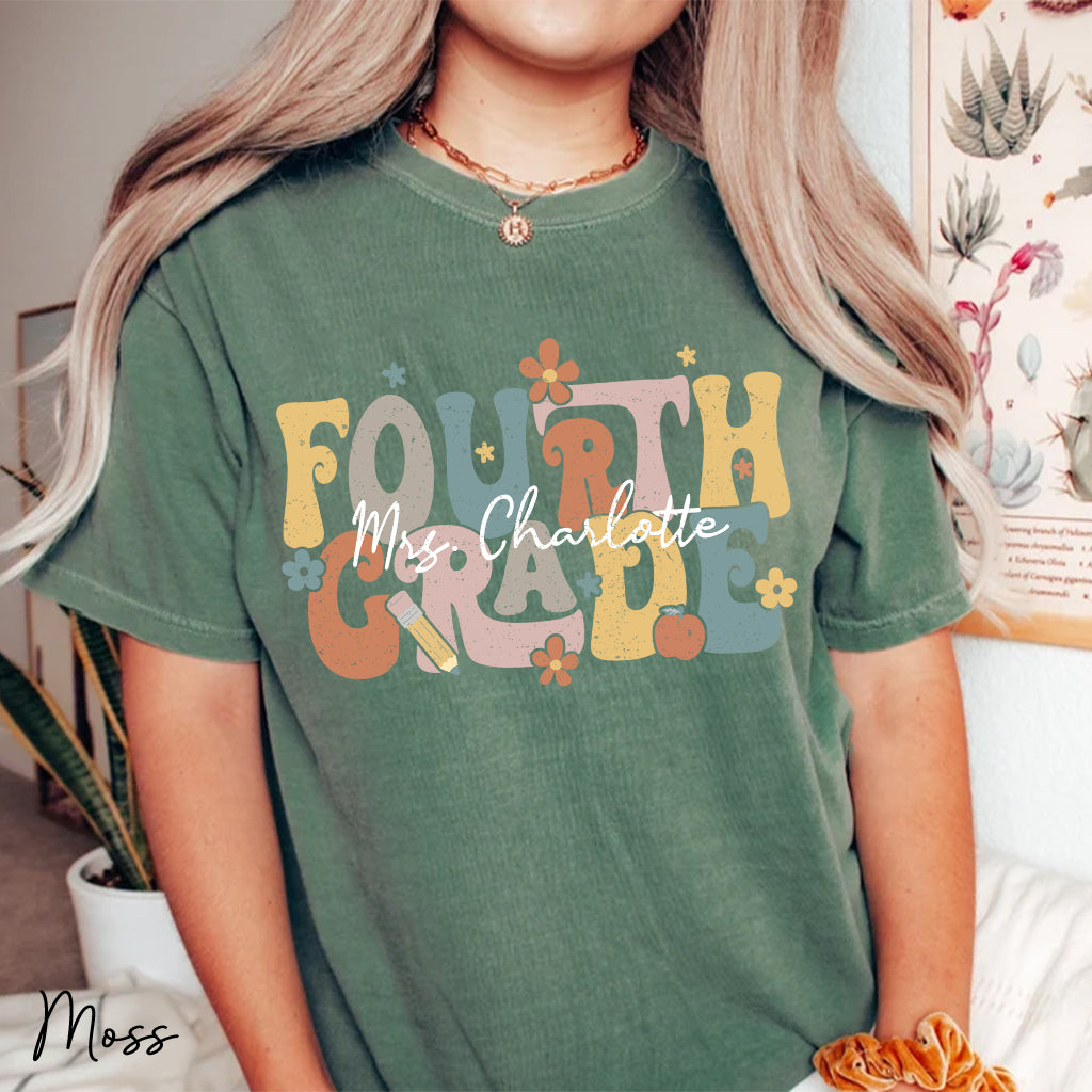 Comfort Colors 4th Grade Teacher Shirt: Personalized Name Gift for Your Favorite Teacher