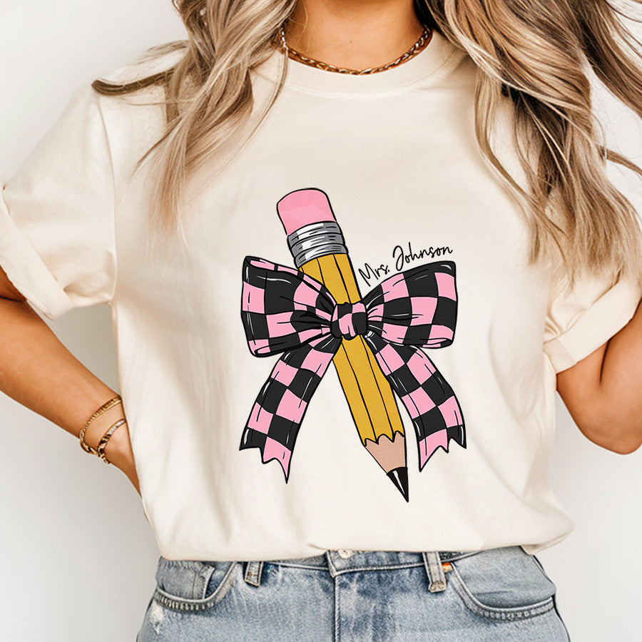 Elevate your back-to-school vibe with our Coquette Pencil With Pink Bow Shirt! This Comfort Colors Cute Teacher Shirt is the perfect gift for any teacher ready to start the year in style. Grab yours now and add a touch of charm to your classroom!