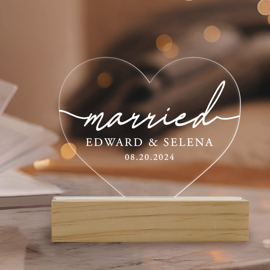 Let your love shine bright with our custom heart night light. It's a charming wedding gift idea that couples will cherish for years to come—truly a Custom Heart Led Light to their hearts!