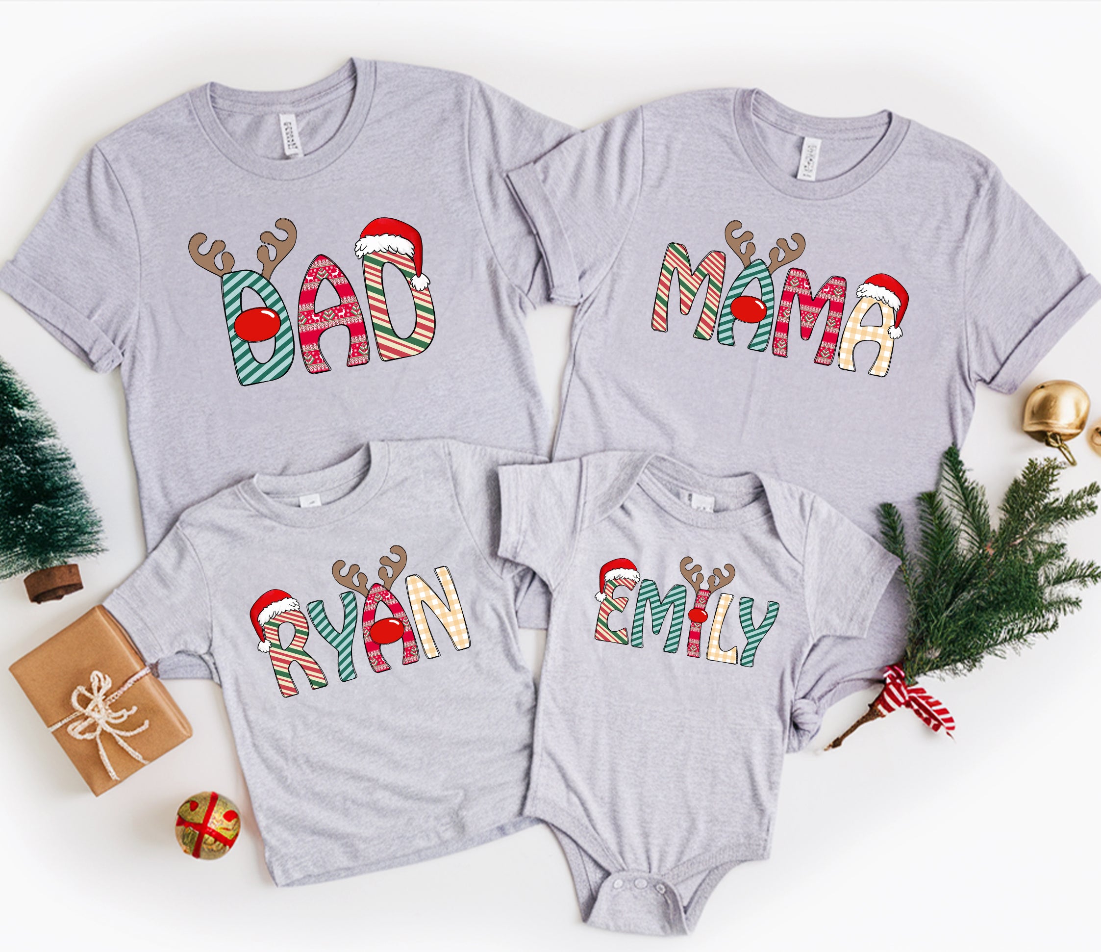 Make this Christmas extra special with our custom name matching family shirts, designed for perfect holiday photos. Order now to enjoy personalized family Christmas shirts that bring everyone together in festive style.