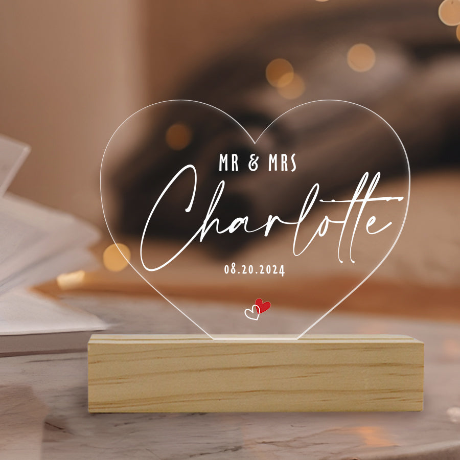 Looking for a meaningful wedding gift? Our custom LED night lamp for weddings is designed to capture the essence of love. Imagine gifting a personalized night light that speaks to the couple's journey. With its soft glow, it’s the perfect reminder of their beautiful day, making it a memorable personalized anniversary wedding gift for couples. Make their celebration unforgettable—get this stunning custom heart night light today!