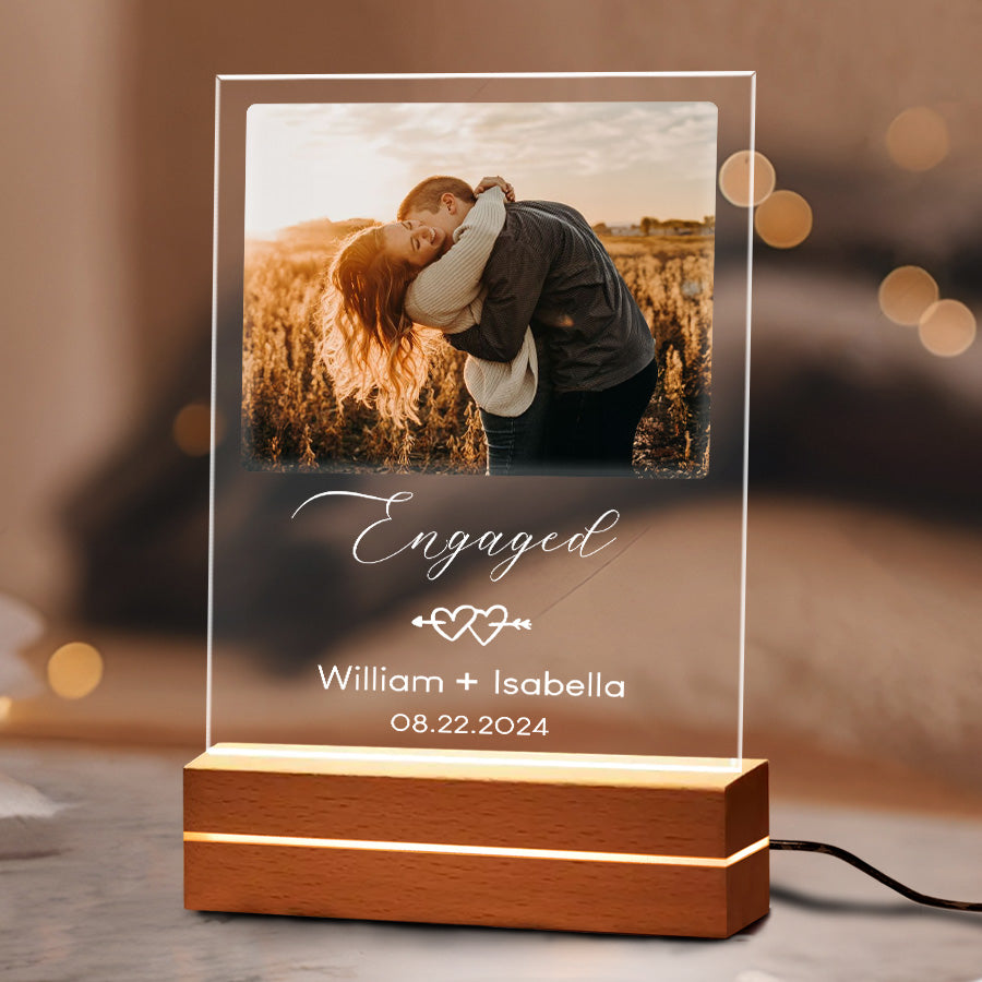 Picture the newly engaged couple admiring a Custom Engagement Night Light designed just for them. Add a Personalised Engagement Night Light that celebrates their special moments together, making their love glow even brighter.