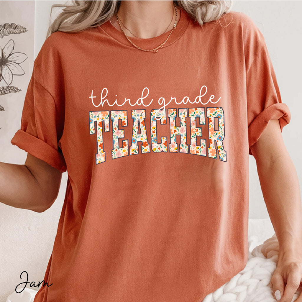 This Floral Third-Grade Teacher Comfort Colors Shirt is perfect for any 3rd-grade teacher. Whether it's for the first day of school or as a thoughtful back-to-school gift, this teacher t-shirt is both stylish and comfortable.