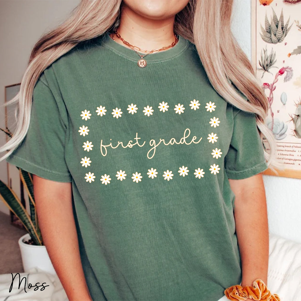 Find your perfect First Grade Teacher Shirt, featuring a delightful Flower design, ideal for your First Day of School. This Teacher Shirt blends comfort with style, perfect for 1st Grade!