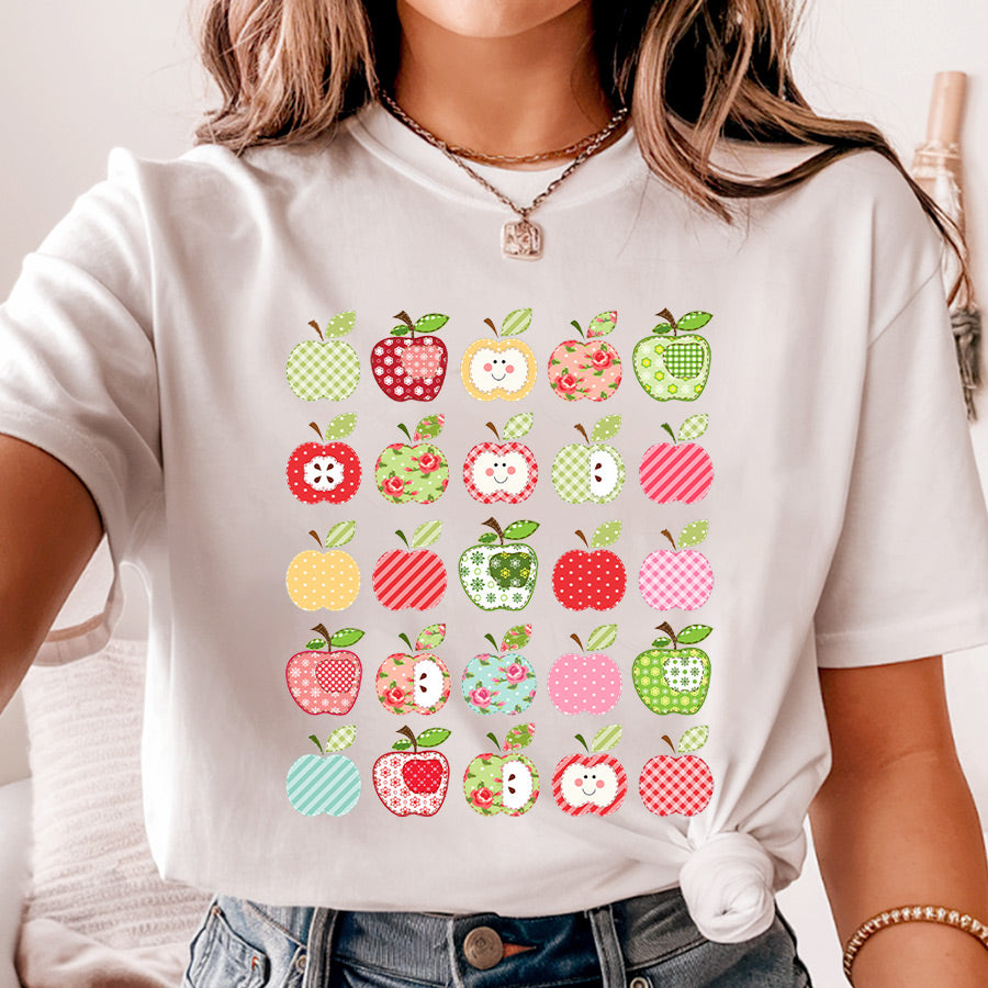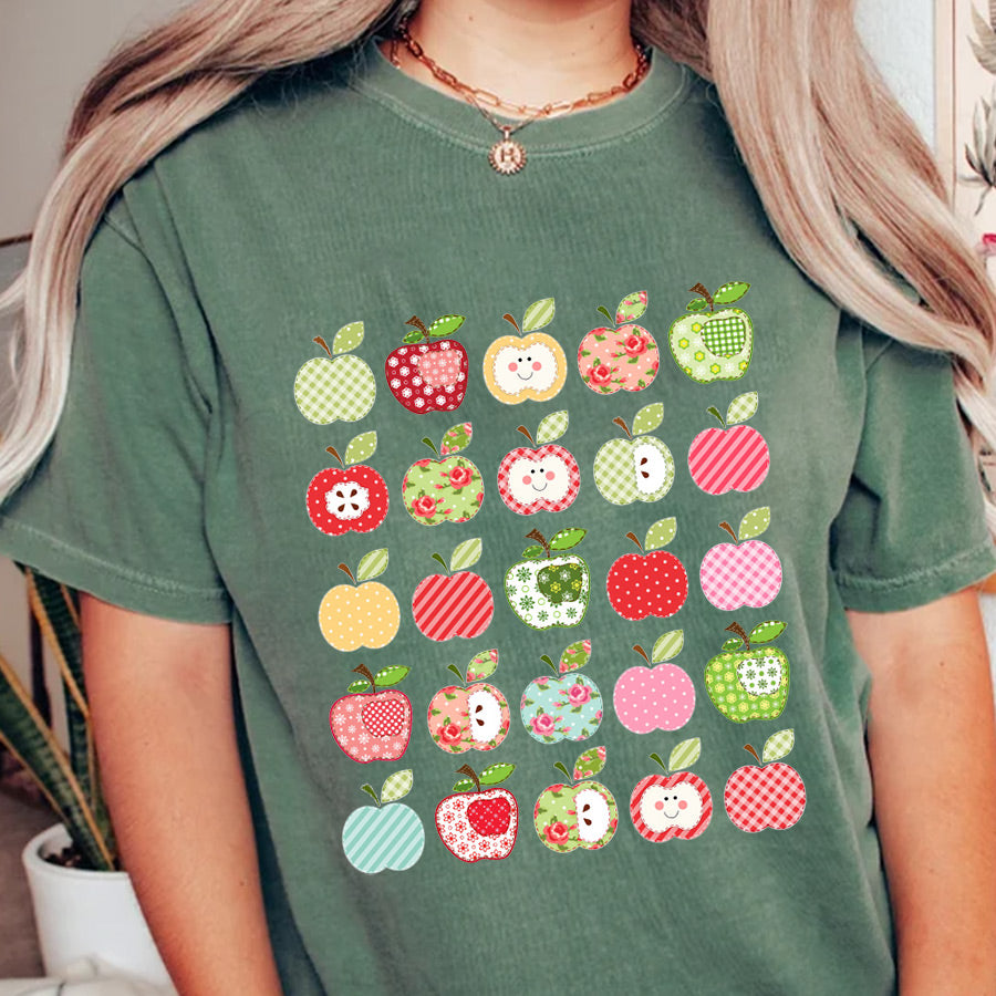 Celebrate your love for teaching with our Folk Art Apples Teacher T-shirt! Featuring a charming apple design and crafted from Comfort Colors for ultimate comfort, this Teacher Apple Tee is perfect for showing off your passion. Teachers love apple-themed shirts, so grab yours today and add a touch of whimsy to your wardrobe!