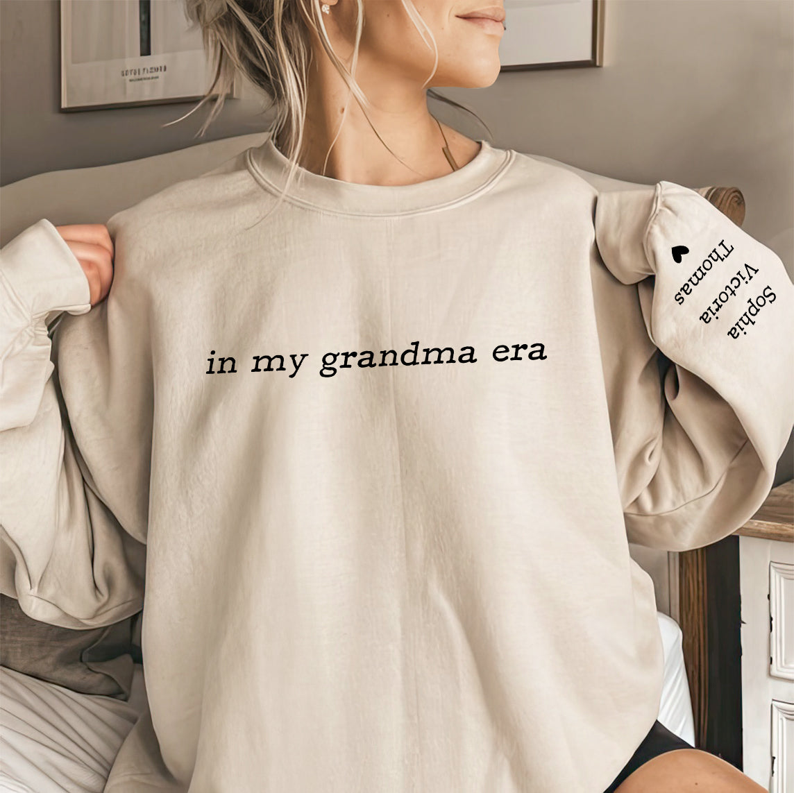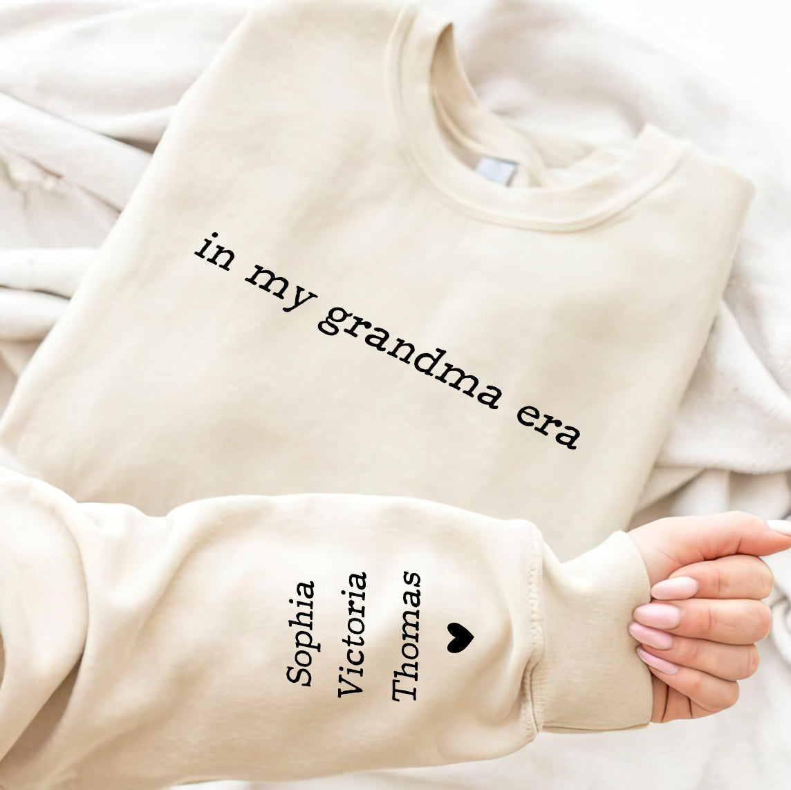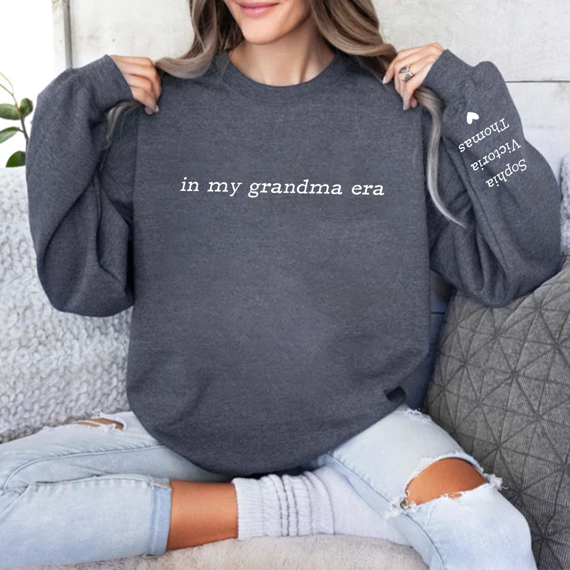 Celebrate the joy of family with our "In My Grandma Era Sweatshirt"—a cozy gift for grandma that features the names of her grandkids. This personalized sweatshirt makes a heartfelt Christmas gift, perfect for showcasing the love and warmth of being a grandma.