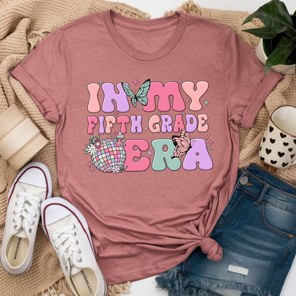 This Fifth Grade Era Teacher Shirt celebrates the 5th Grade Team with a Teacher Appreciation design, perfect for any teacher's wardrobe.