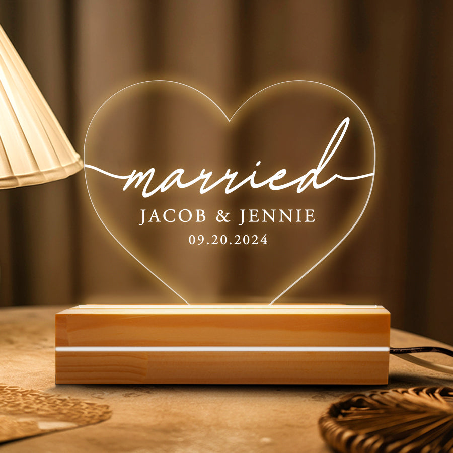 Led Heart Couple Name Light highlights a range of thoughtful wedding gifts, including a custom LED night lamp for weddings. Personalized options like a custom heart night light or a custom name night light as a wedding day gift are sure to impress any couple.