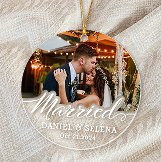 Married Ornament symbolizes the love and commitment you share. Our Custom Married Ornament for Bride will add a touch of elegance to your Christmas celebrations.