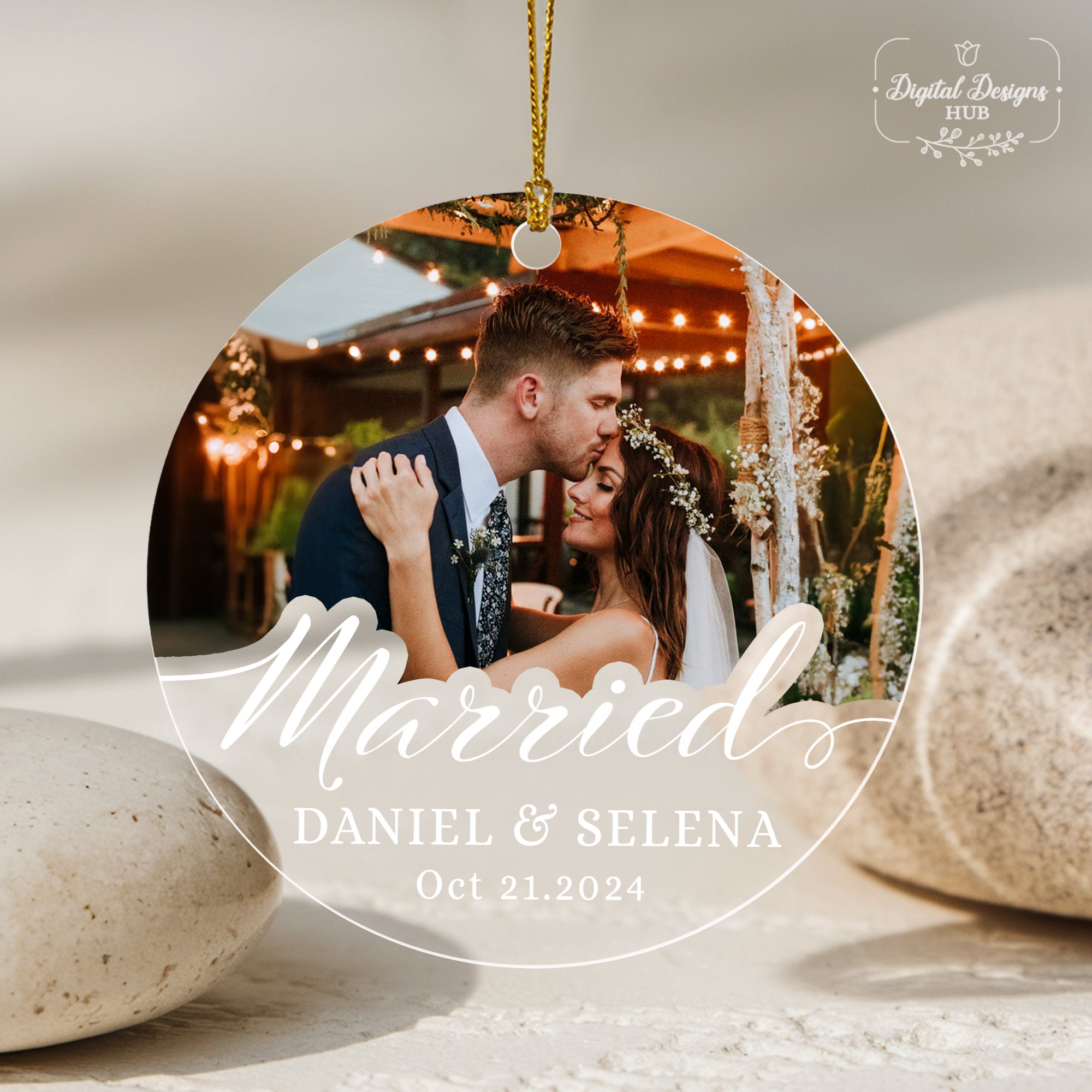 Mark your first holiday season with our delightful Married Ornament, a Custom Married Ornament that speaks to your unique love story. This exquisite piece is tailored to capture the essence of your marriage, making it a true keepsake. The Married Ornament | Custom Photo Acrylic Ornament | Circle Shape 1-side Printed is a perfect addition to any festive setting, radiating warmth and affection. Each time you hang it on the tree, it will evoke sweet memories of your love and commitment.