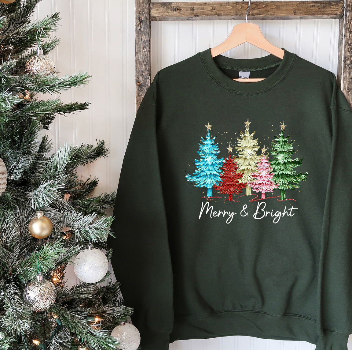 Ready to dazzle this winter? Our Merry and Bright Tree Sweatshirt will have you glowing with the holiday spirit!