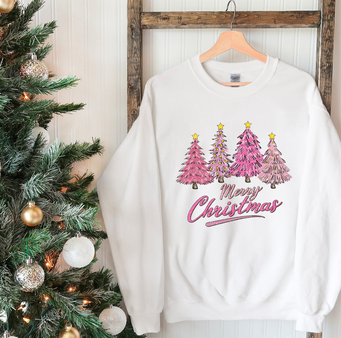 Don’t miss out—snag your Pink Christmas Tree Sweatshirt today and step into a season full of style and festive fun!