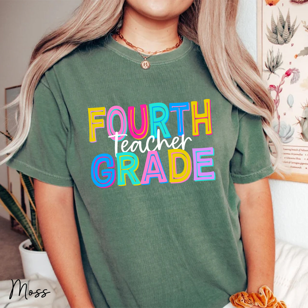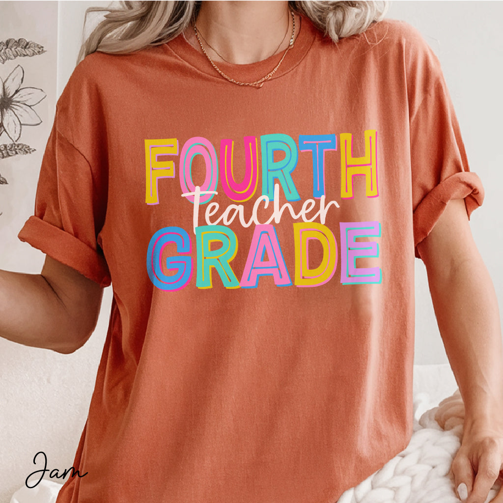Embrace your passion and order now! Join educators nationwide who choose quality, style, and a touch of nostalgia in every stitch. Elevate your wardrobe with our exclusive Comfort Color Fourth Grade Teacher Shirts today!