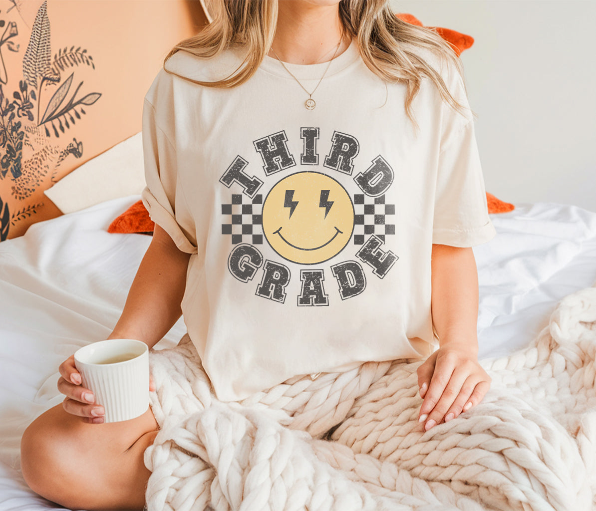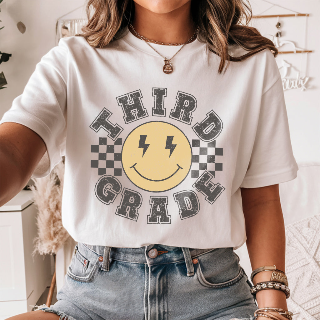 Calling all third-grade teachers! Step into the classroom with style on the first day of school with our retro-themed shirt.