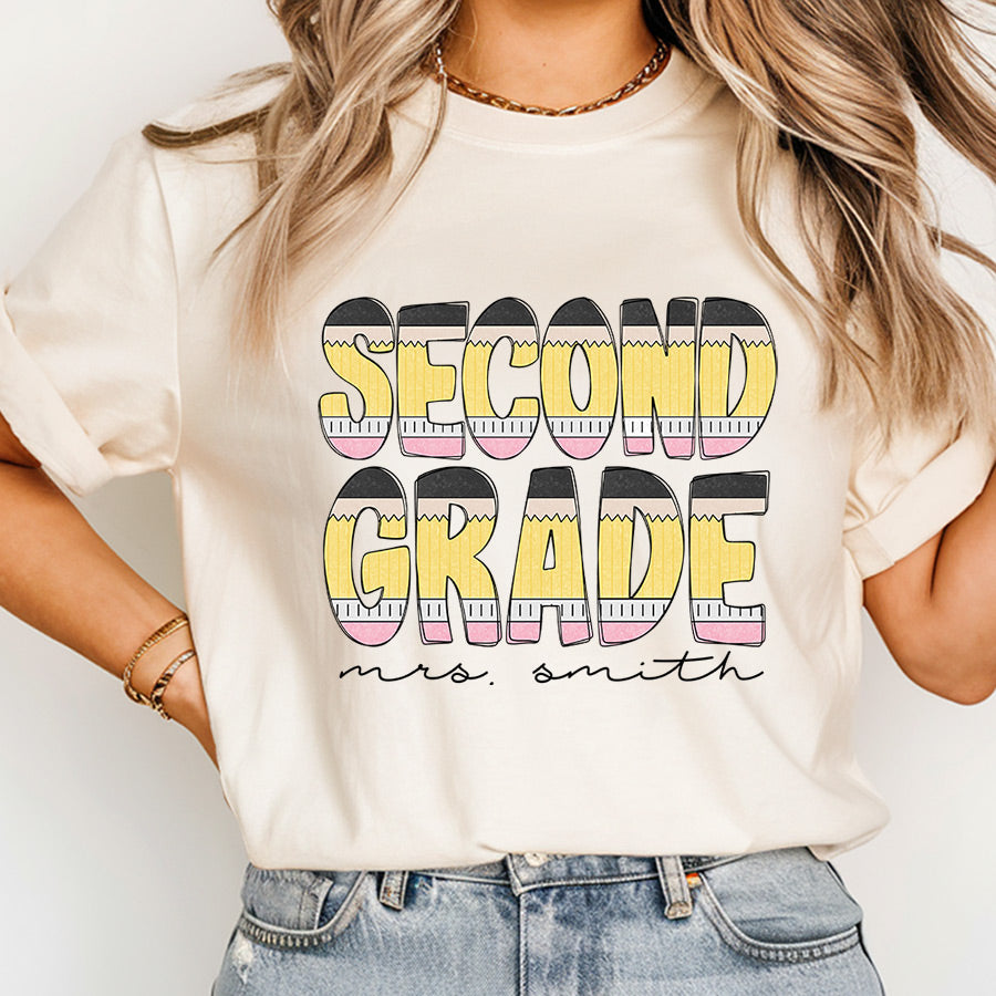 Picture this: A soft, cozy Comfort Colors shirt, perfectly adorned with your name and a playful pencil design. It's not just any shirt—it's your shirt, crafted with love for your second-grade squad. Ready to teach in style? Of course, you are!