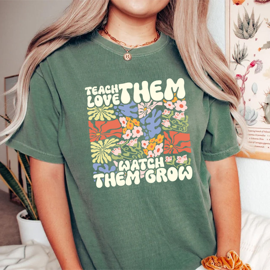 Celebrate teachers with our "Teach Them, Love Them, Watch Them Grow" floral shirt, perfect for Teacher Appreciation or Back to School. This Comfort Colors shirt offers both style and comfort, making it a thoughtful gift for any dedicated educator.