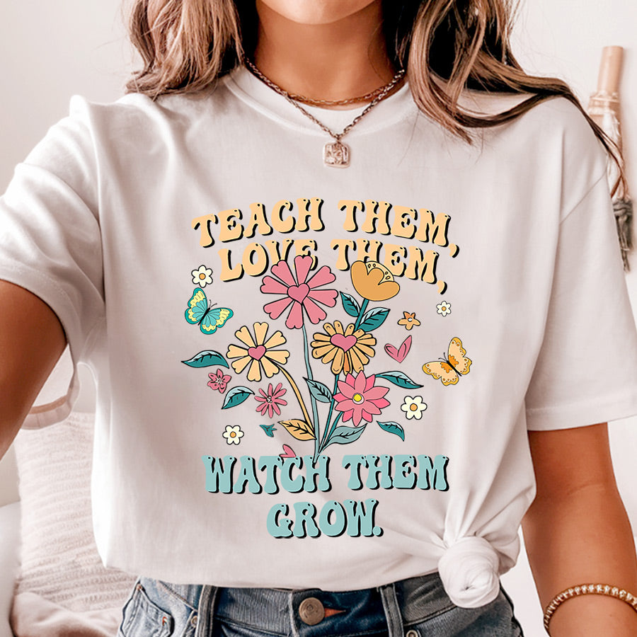 Embrace the joy of teaching with our "Teach Them, Love Them, Watch Them Grow" shirt, crafted in soft Comfort Colors for ultimate comfort. Celebrate your dedication with our vibrant Flower Teacher Shirt, perfect for any Teacher Appreciation occasion. Grab yours today and wear your passion proudly!