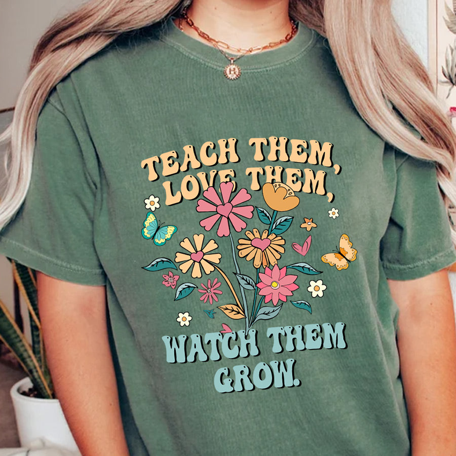 Celebrate the passion of teaching with our "Teach Them, Love Them, Watch Them Grow" shirt, crafted in Comfort Colors for ultimate comfort. Perfect for any educator, this flower-themed Teacher Appreciation shirt is a heartfelt tribute to the incredible impact teachers have.