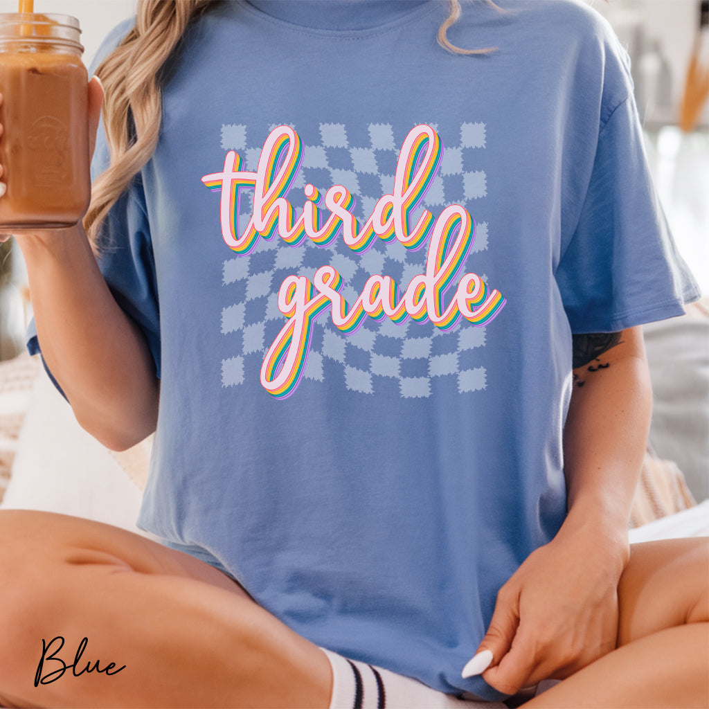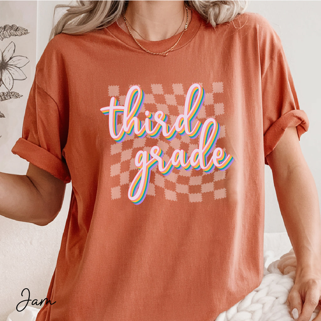 Get ready for back to school with our Third Grade Retro Rainbow Teacher Shirt! This Comfort Colors tee makes the perfect gift for any 3rd-grade teacher, combining style and comfort in one fabulous piece.