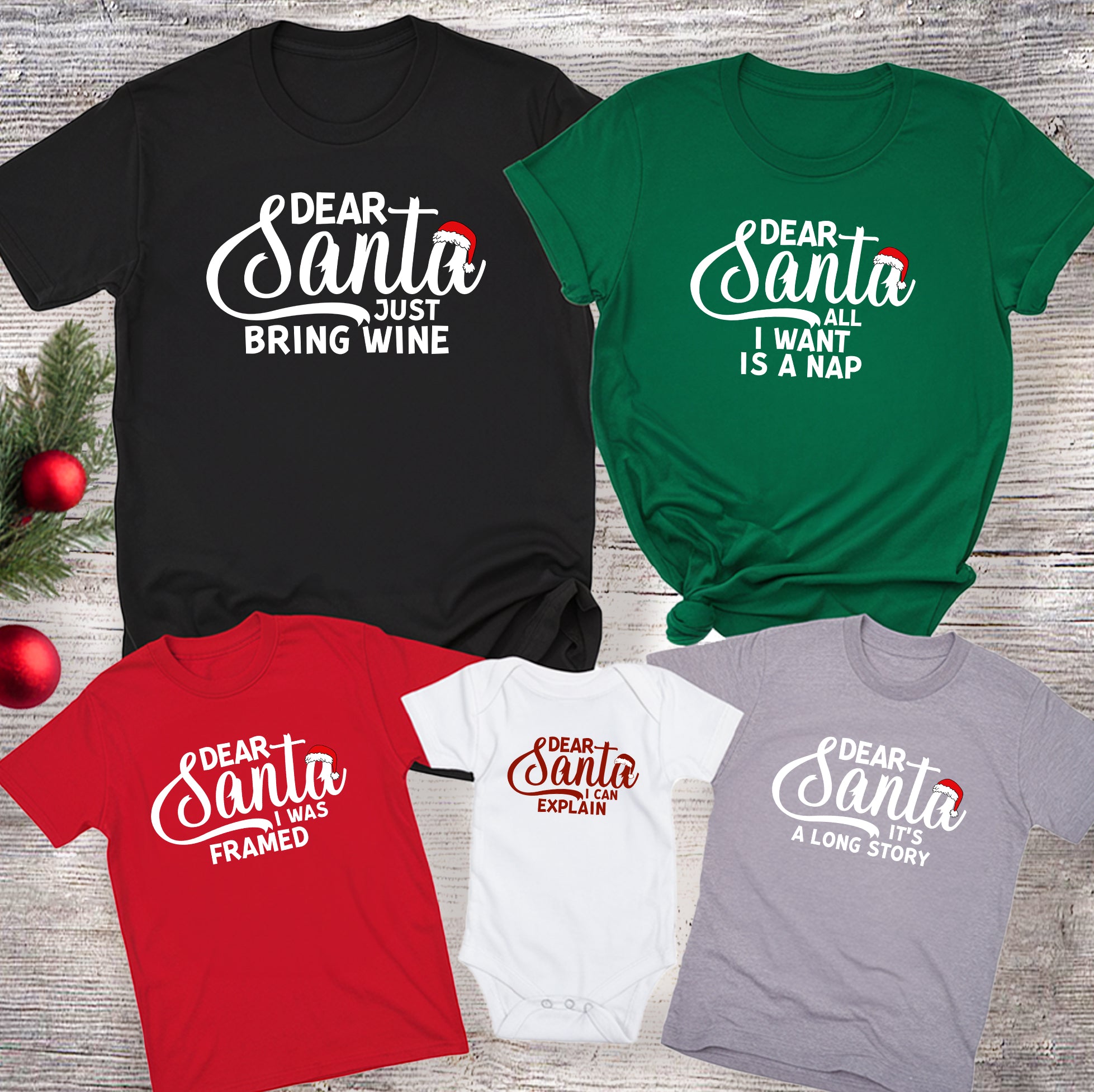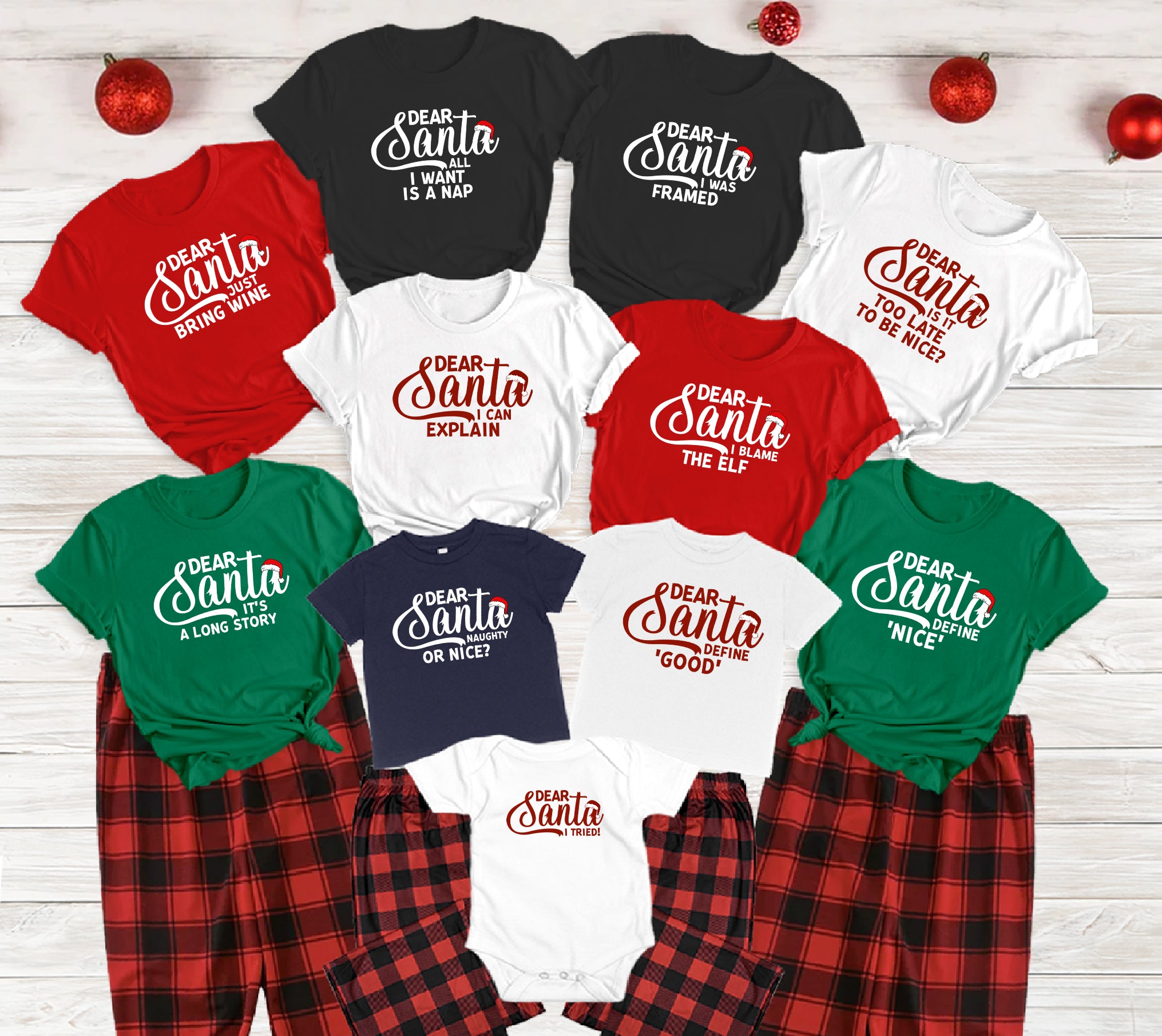 Get your family in the holiday spirit with our *Dear Santa Christmas Family Shirts* – a perfect blend of humor and festive charm! Personalize your *Custom Quotes Family Matching Christmas Shirt* and bring laughter to every gathering with our *Funny Santa Shirt* featuring hilarious *Dear Santa Quotes Group Shirt* designs.
