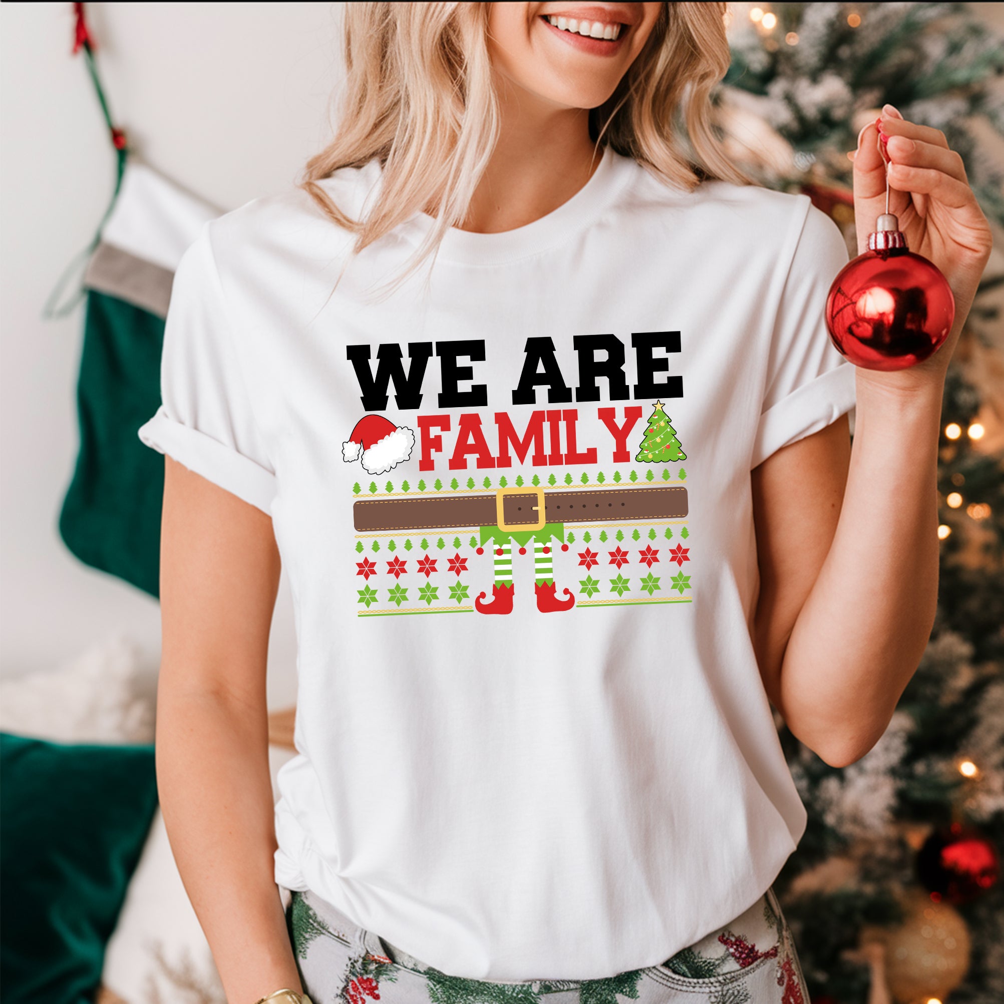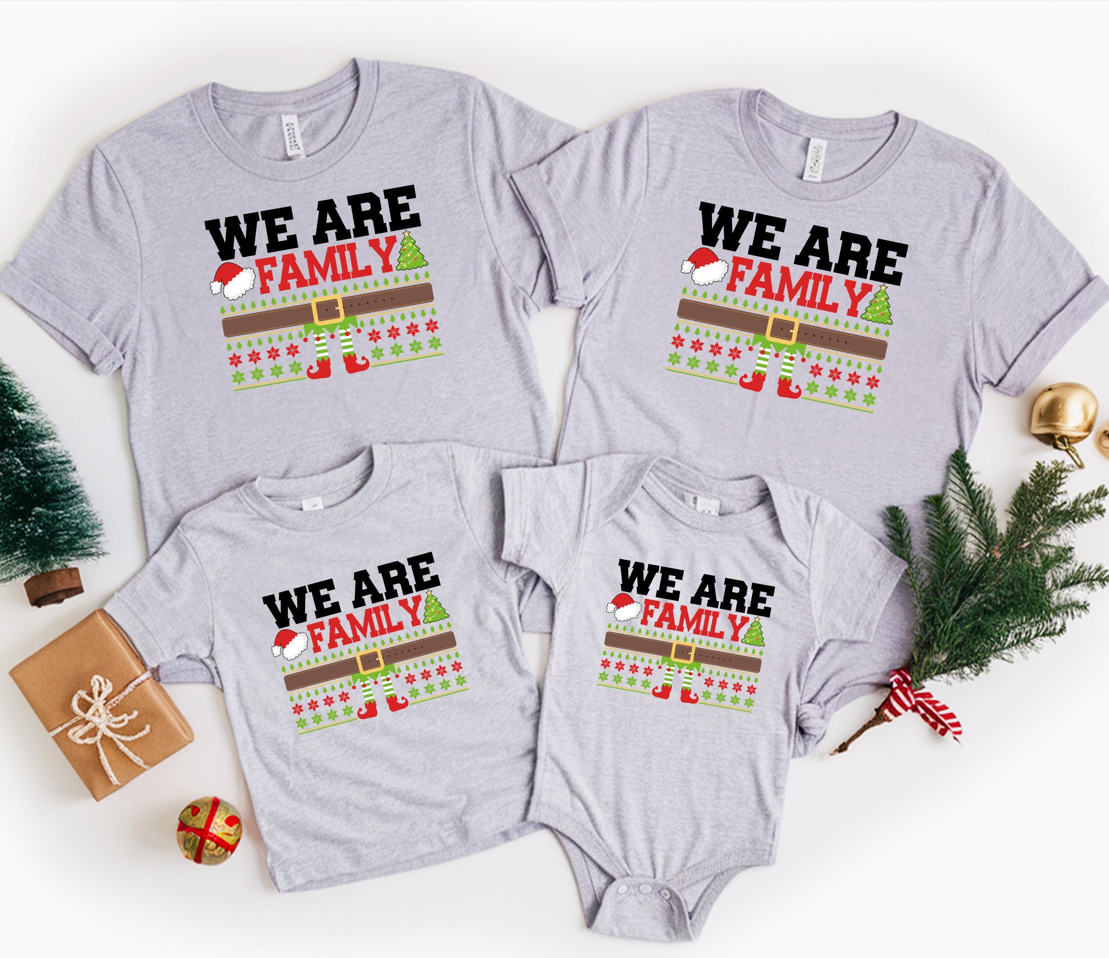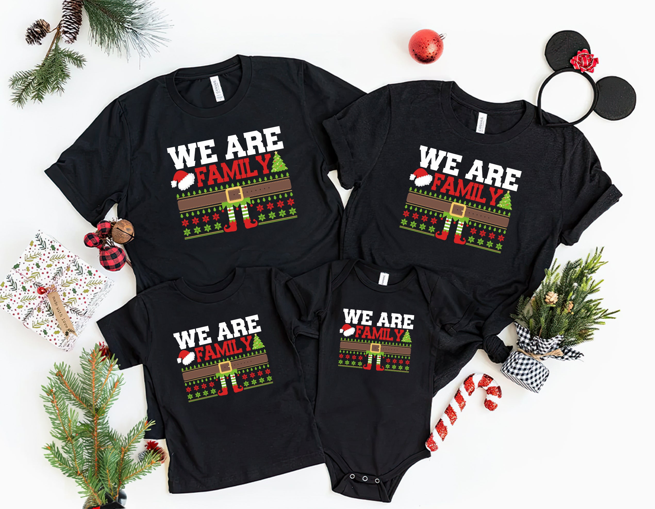 Celebrate the holiday spirit with our We Are Family Christmas Pajamas and Matching Christmas Family Shirts! These Family Matching Tees make perfect Holiday Family Gifts and add festive fun to your Christmas Party. Make your Xmas Tee collection complete with a touch of family unity!